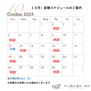 10月の診療スケジュールは、下記の通りです。